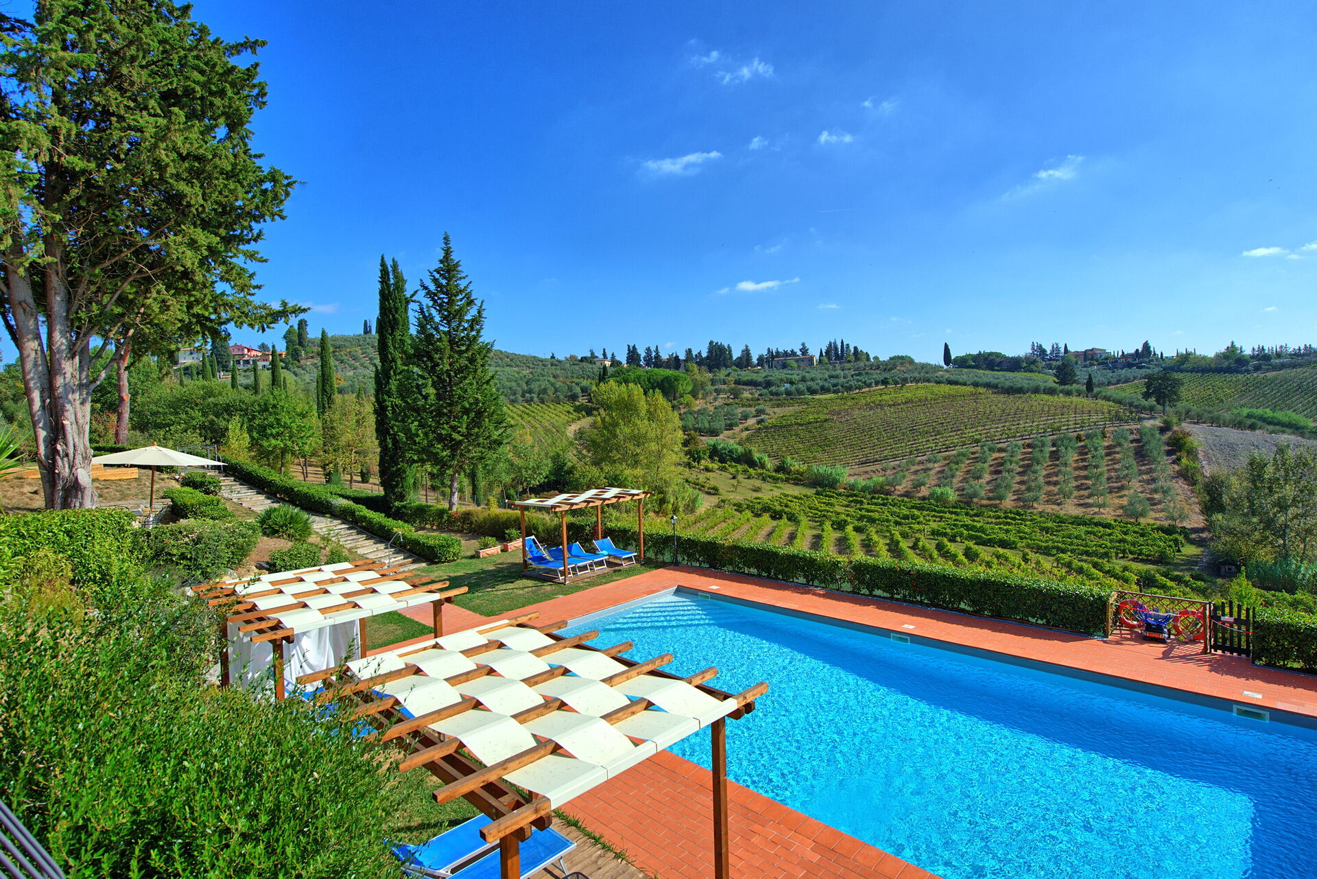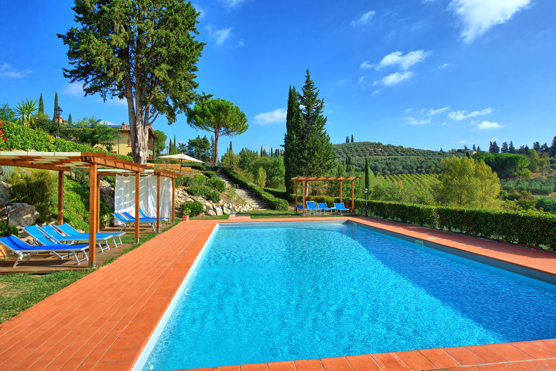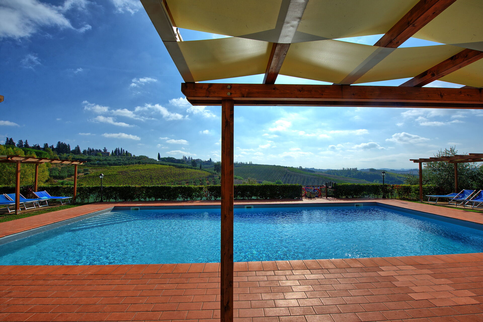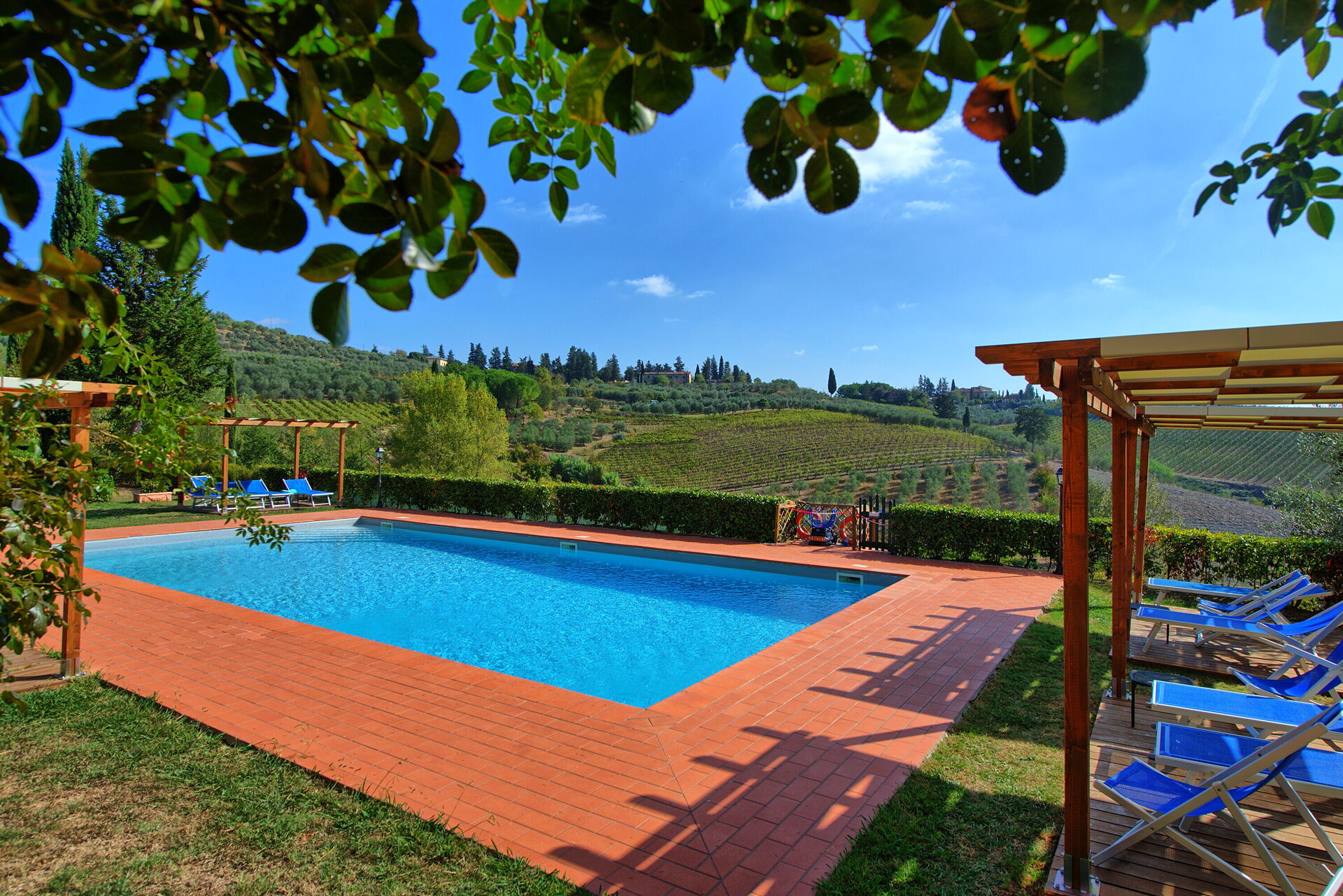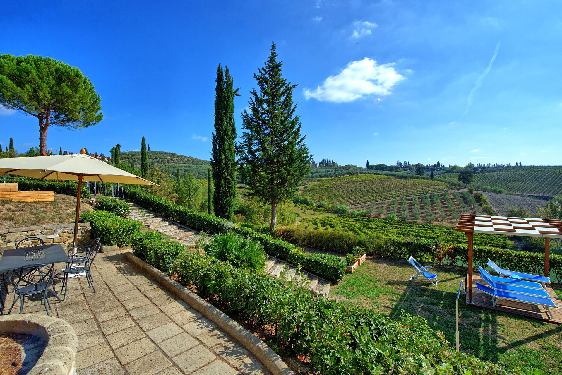 Una piscina comune è a disposizione degli ospiti, così come un ampio giardino per godere di una bellissima vista panoramica sulle campagne del Chianti.