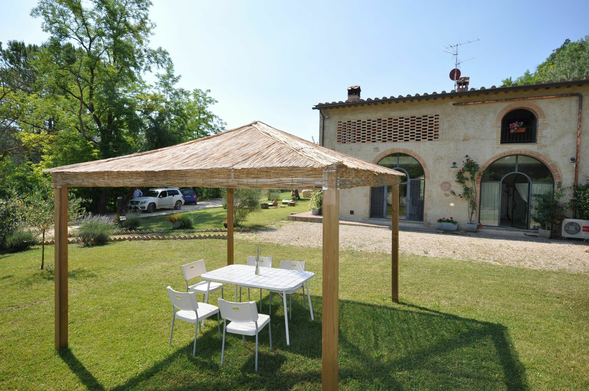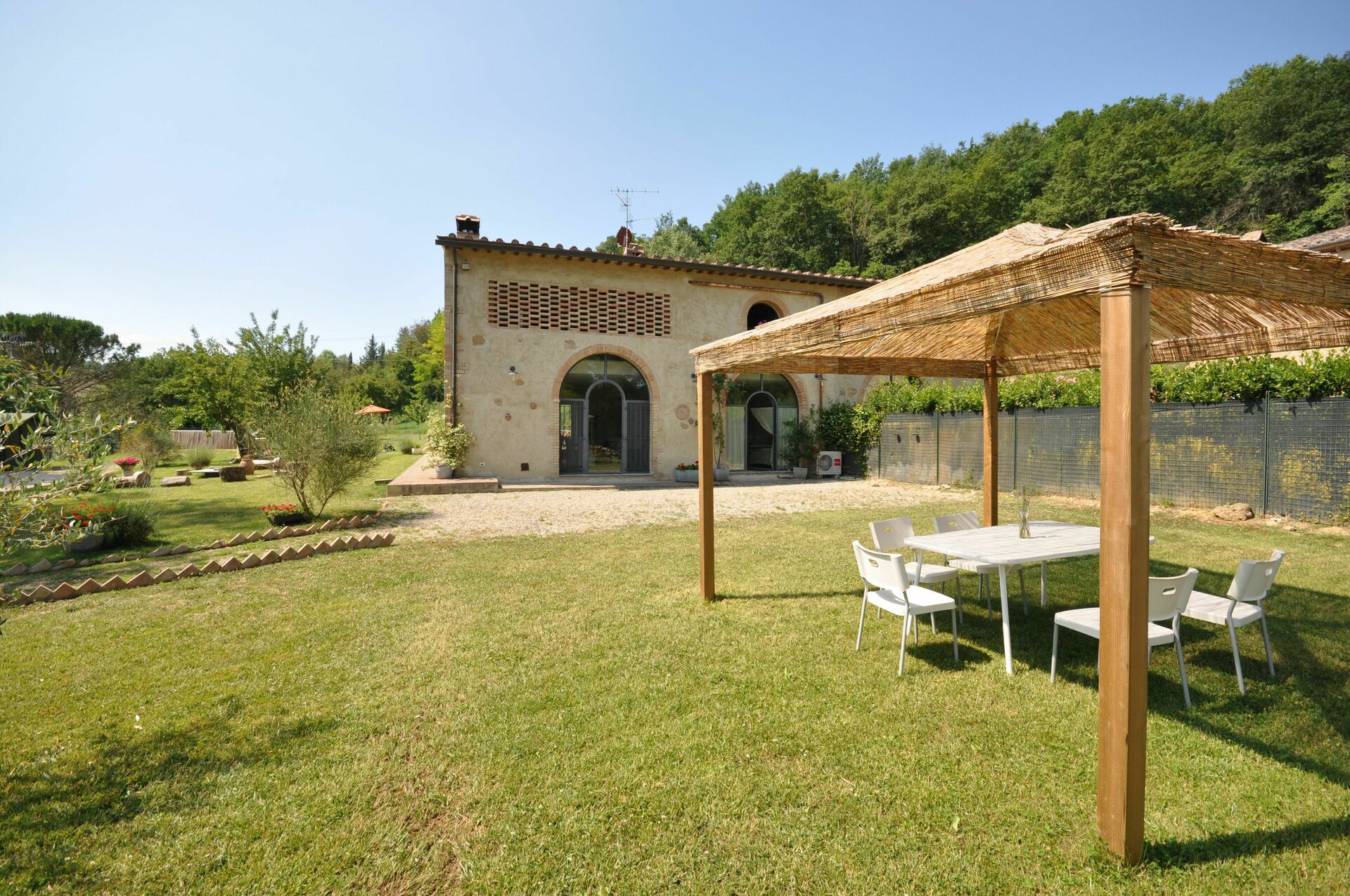 Bella casa indipendente con piscina privata (fuori terra) ricavata dall’attenta ristrutturazione di un fienile risalente ai primi anni del 1900, situata a brevissima distanza dalla splendida cittadina medievale di San Gimignano (circa 4 km). La casa, immersa nel verde della campagna toscana, è in posizione ideale per raggiungere facilmente i più importanti centri d’interesse della zona come Firenze, Siena, Volterra, Arezzo ecc… L’arredamento è molto confortevole, moderno e si integra bene con la struttura architettonica originale della casa che conserva ancora il soffitto a travi e travicelli e le finestre “grigliate” tipiche dei vecchi fienili.