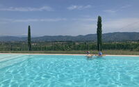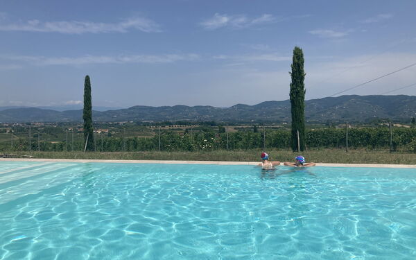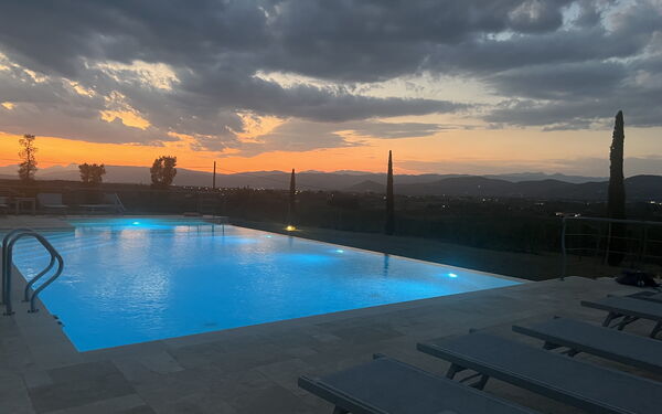 and loved the fully equipped, beautiful appartment, friendly 5-star service and care by Martina & Lorenzo, the stunning panoramic views over the Tuscany hills, the wonderful and large infinity swimming pool, table tennis & table football and the nice gazebo's to sit outside by the pool enjoying our antipasti and home made 'Sole di vino' wine.